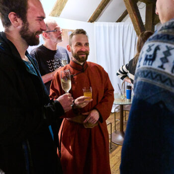 Festivalová a zároveň i „sadbácká“ oslava proběhla v podvečerních hodinách v útulných prostorách brněnské Skleněnky, jak se familiárně říká domu otevřenému kulturním akcím, galeriím i příjemným posezením v čajovně. Na oslavu dorazilo kolem padesáti návštěvníků.