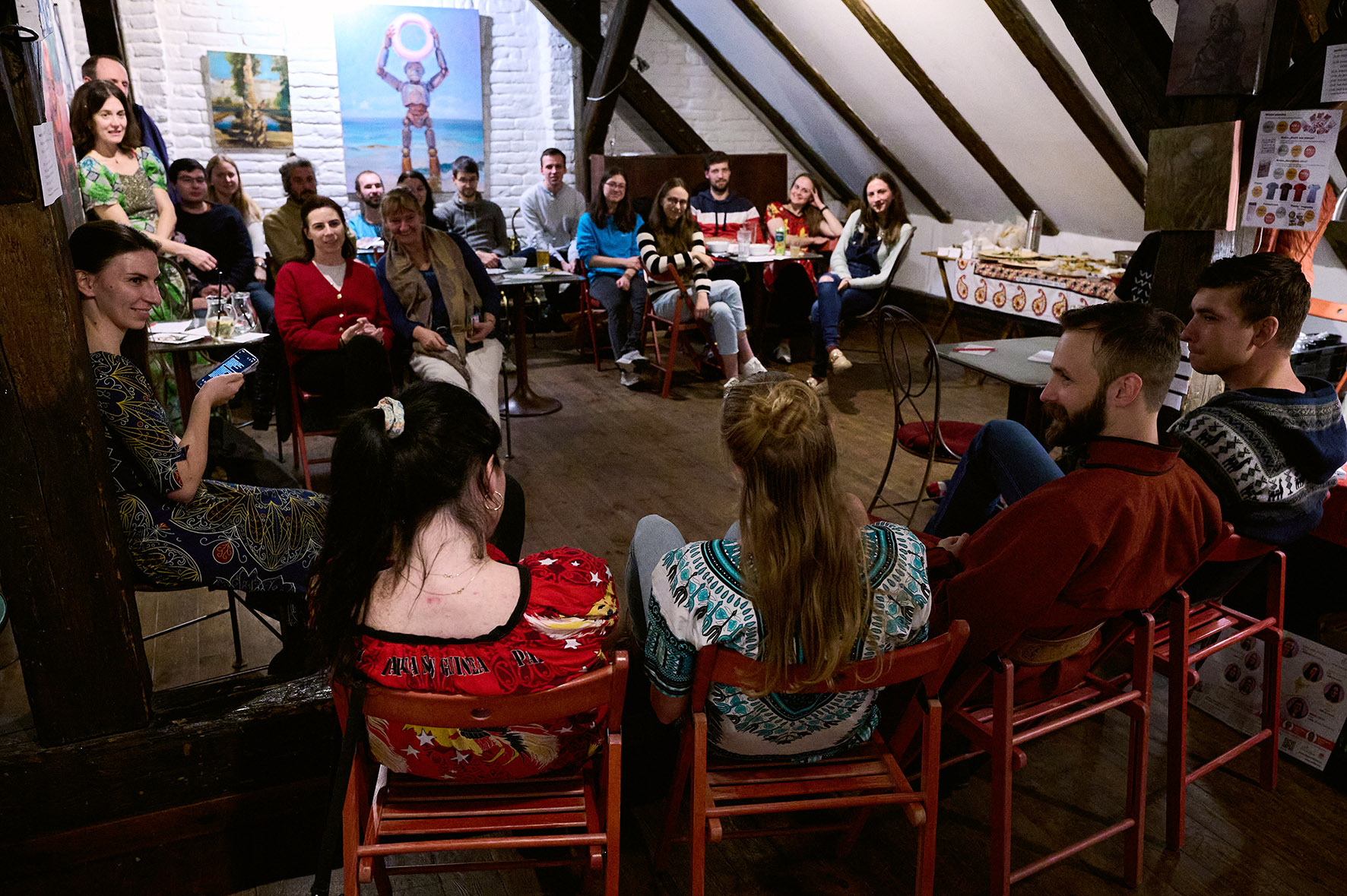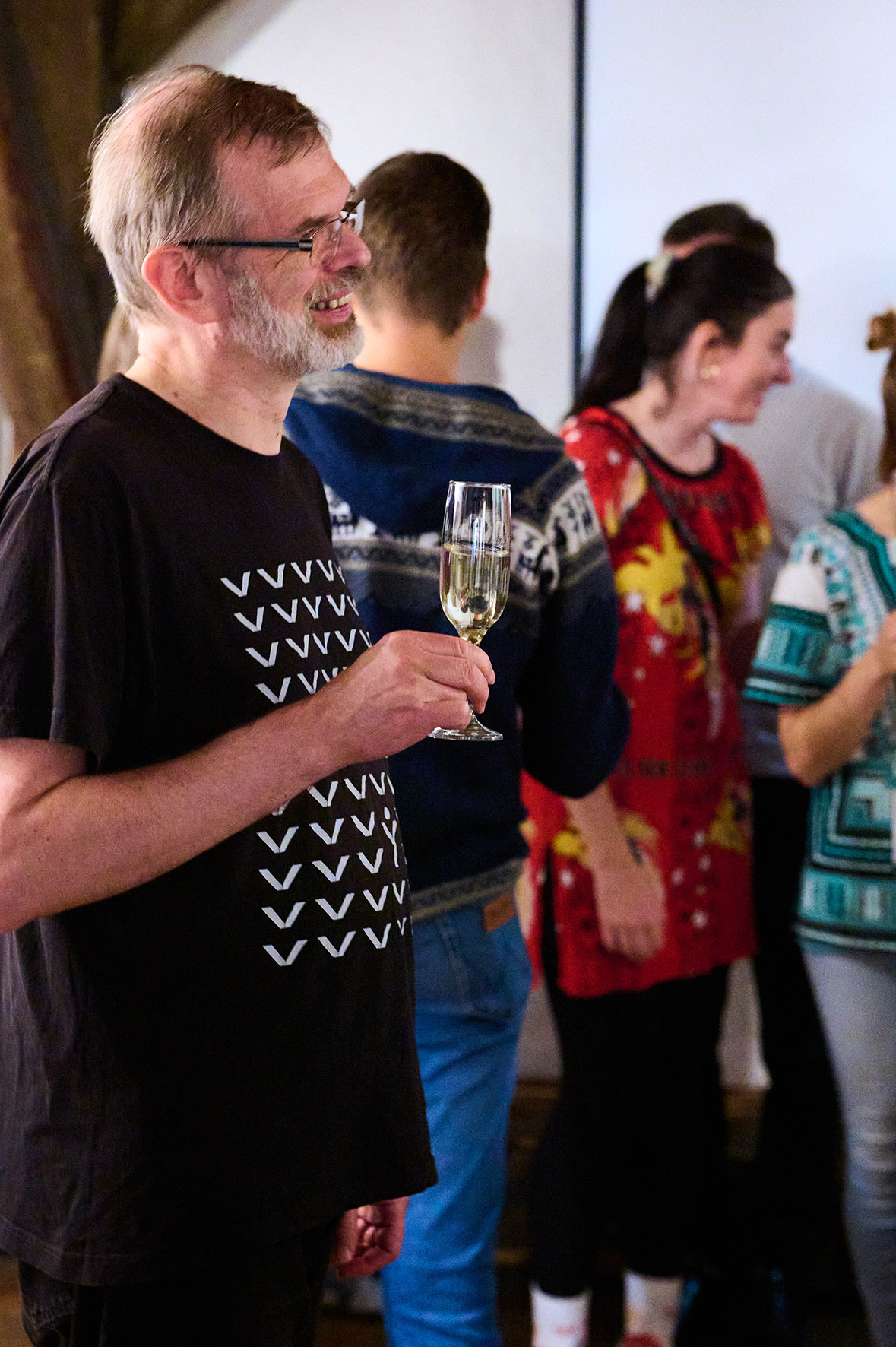 Festivalová a zároveň i „sadbácká“ oslava proběhla v podvečerních hodinách v útulných prostorách brněnské Skleněnky, jak se familiárně říká domu otevřenému kulturním akcím, galeriím i příjemným posezením v čajovně. Na oslavu dorazilo kolem padesáti návštěvníků.