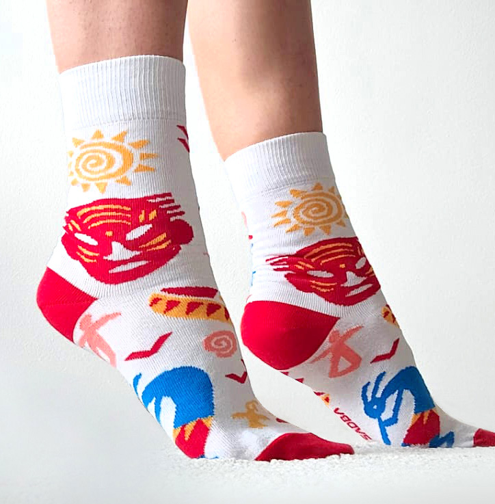 - Byly vyrobeny misijní ponožky nabízené k prodeji za účelem podpory činnosti Sadby.