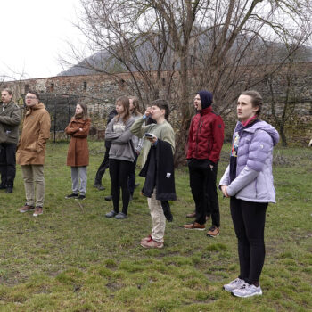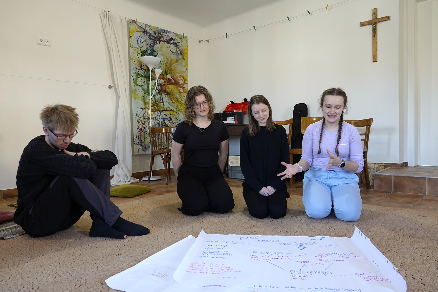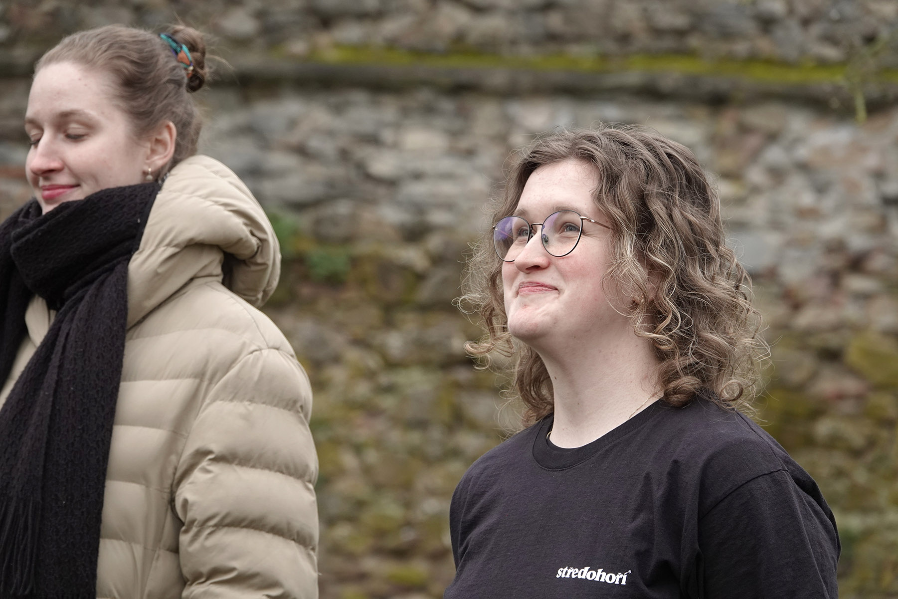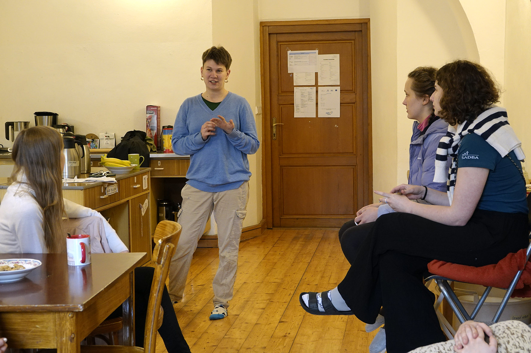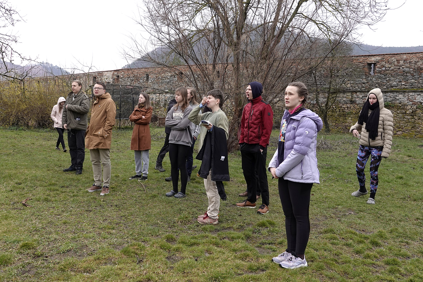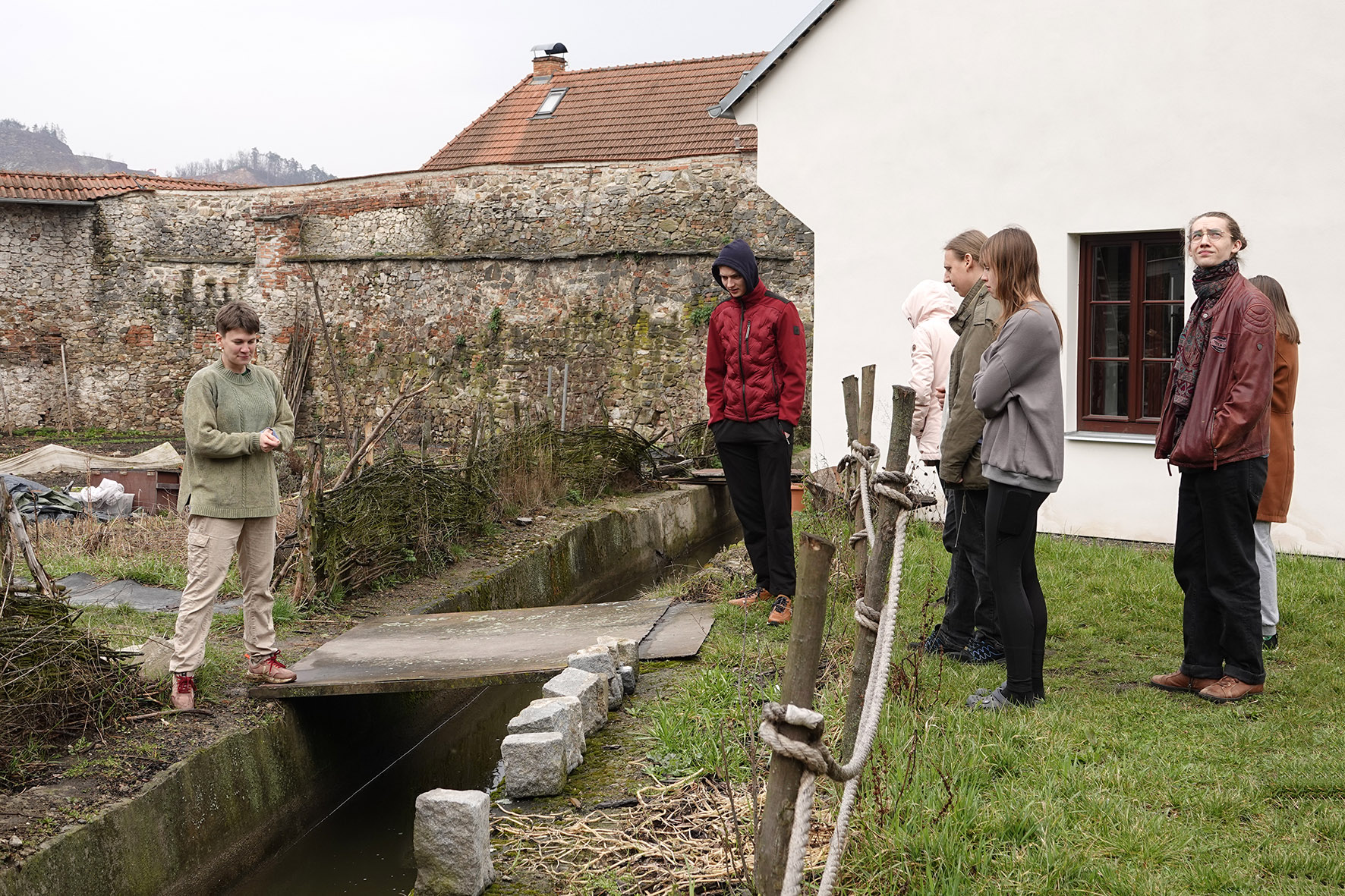 Součástí programu, kterou pro nás připravil spolek NaNebi z.s., byla i společná práce na klášterních pozemcích. Rozdělili jsme se do skupin a rozebrali si úkoly: uklízení a zpracování spadaného dřeva, údržba oplocení kolem záhonů, demoliční práce v přilehlé bednárně nebo louskání ořechů. Práce na čerstvém vzduchu pomohla kolektiv ještě více sblížit a zanechala pocit smysluplnosti – i touto krátkou formou jsme mohli přispět k vytvoření lepšího prostoru třeba pro další projekty, jako je Svět bez hranic.