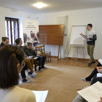 Po jídle přišly na řadu seznamovací aktivity. Přiznám se, že mi je vlastní ocitat se ve vlastní uzavřené sociální bublině – tím větším nadšením mě naplňovalo, když jsem mohl zjišťovat, jak žijí další lidé. Ať už pracují u dráhy v Mostu, studují současně dvě výšky v Praze, píšou čtyři diplomky během čtyř let nebo studují výšku v Rakousku. Aktivity pro stmelení kolektivu byly velmi efektivní a myslím, že se všichni koncem večera cítili mezi ostatními velmi přirozeně.